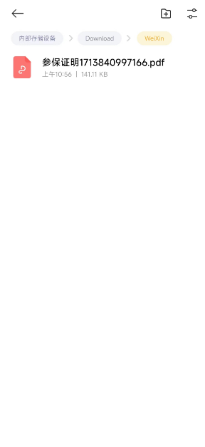 第三步:使用手机“文件管理”功能,即可找到刚刚保存的“社保参保证明”电子档。