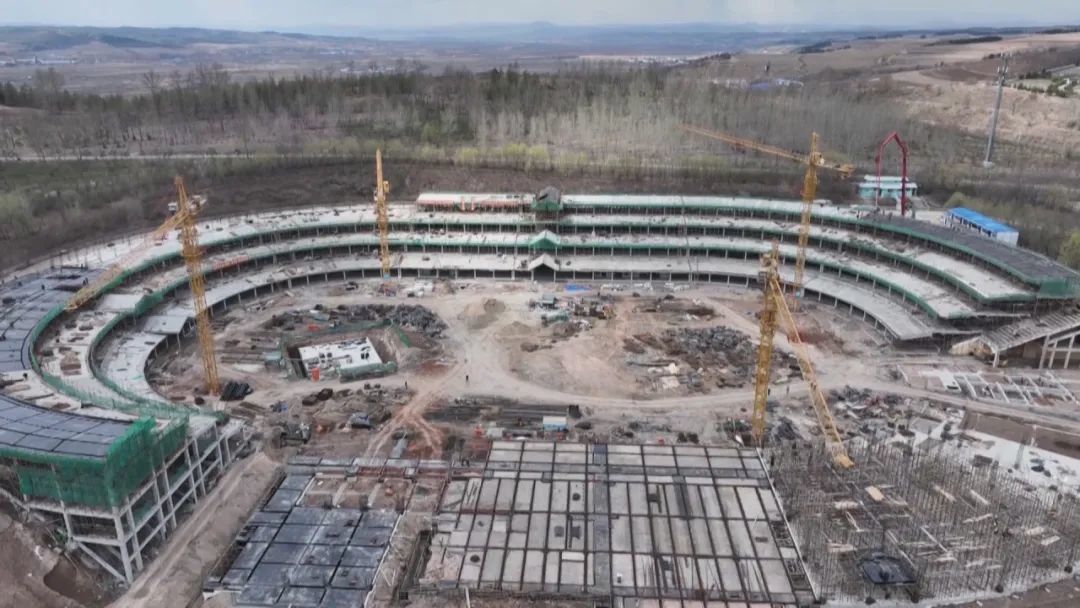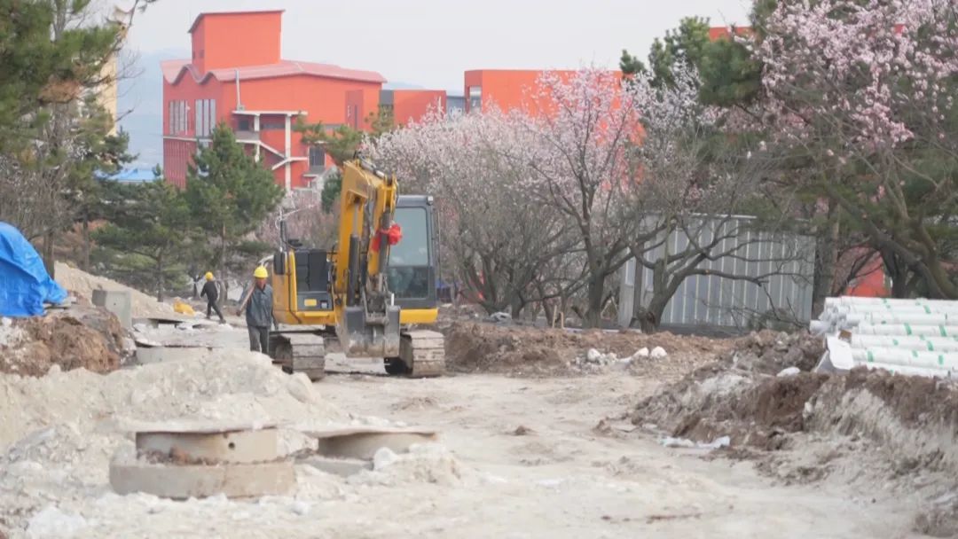在延边应用技术学院项目现场,建筑车辆频繁往来,工人们加紧施工。该学校主要利用原延边大学科学技术学院进行改建、修缮,建成的一所高等职业类本科大学。项目于去年四月开工,目前正进行室内清理、砌筑备料、外墙玻璃幕骨架安装等施工。项目预计于5月30日基本完工。