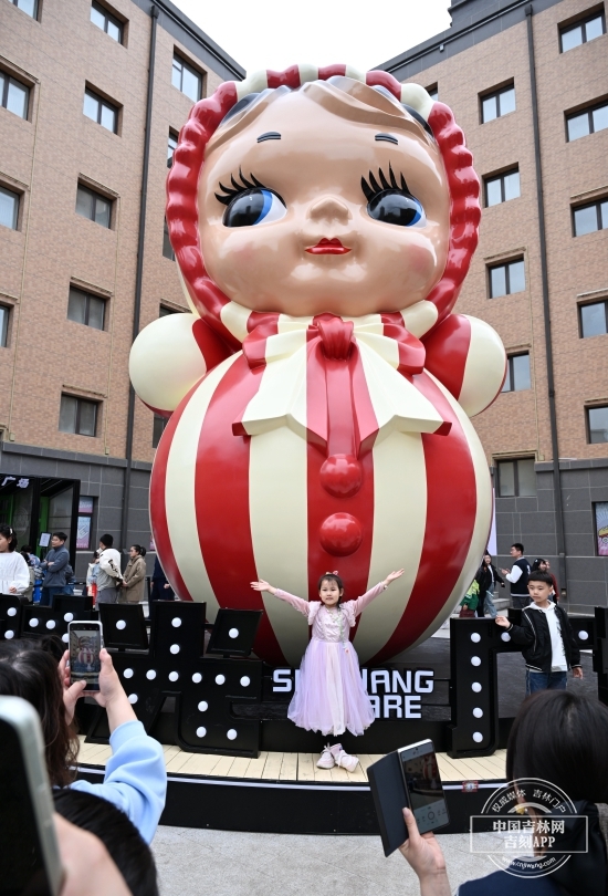 一踏入街区,复古与新潮交织的气息扑面而来。百年老建筑错落有致,红砖灰瓦、古朴墙体,与周边的现代高楼形成鲜明对比,让人仿佛时光穿梭一般,瞬间回到了百年前的“老长春”。而街头8米高的巨型娃娃,更是成为了游客们争相合影的“明星地标” 。