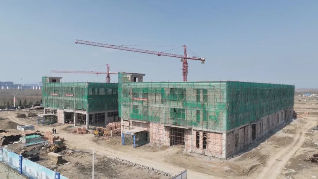 在珲春合盛科技产业园项目建设现场,两栋厂房拔地而起,装载机正将一摞摞多孔砖运送至厂房内部,工人们紧张地进行砌筑作业。