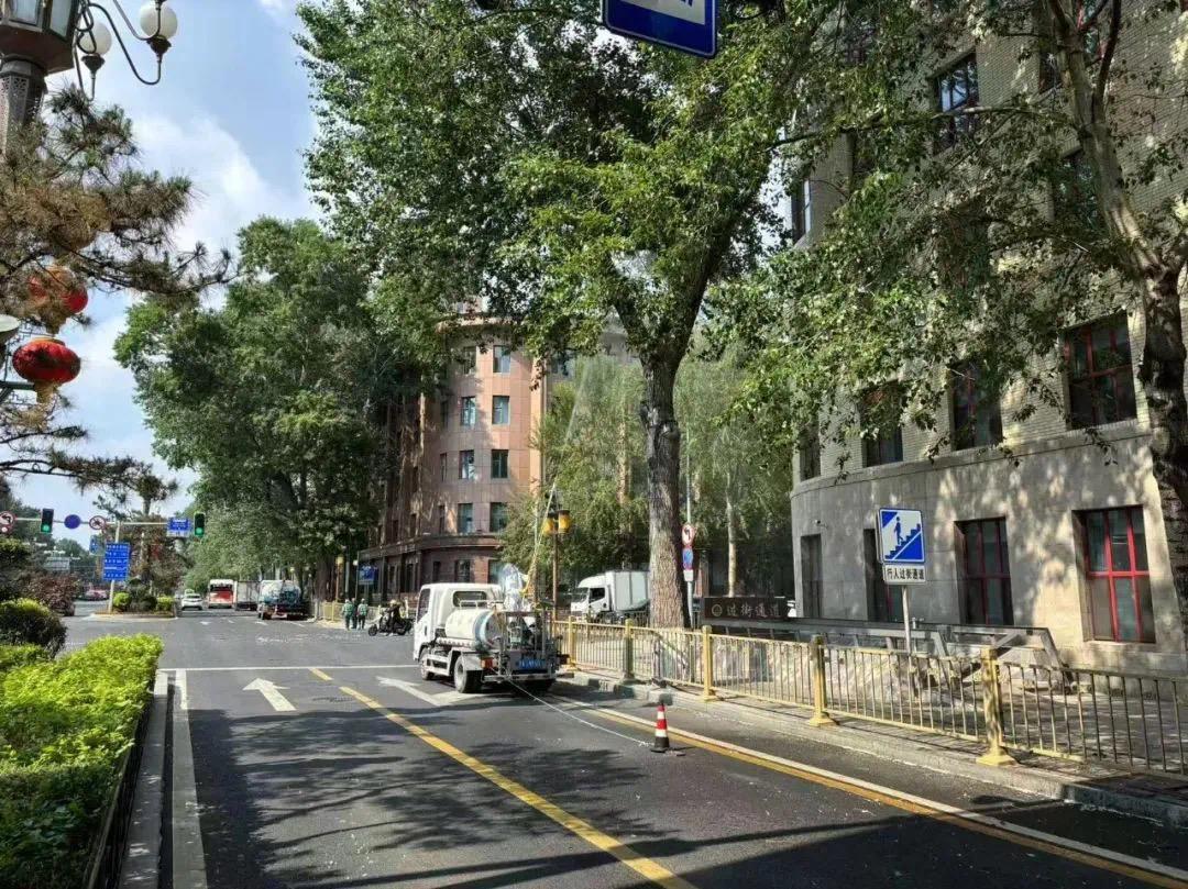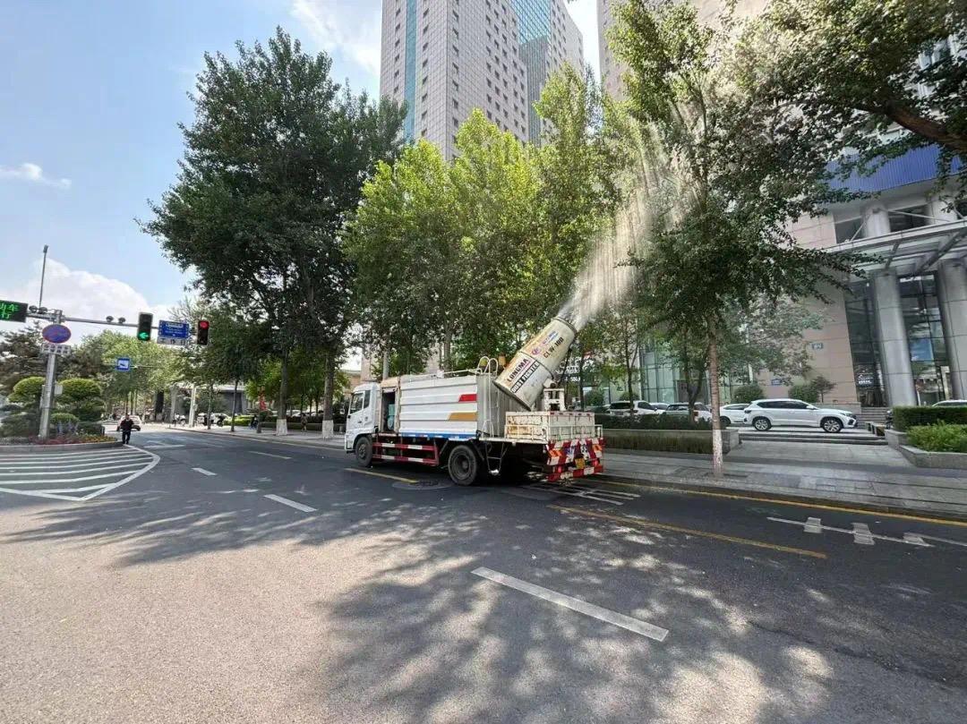 综合管理强化协同,构建全周期治理体系。在物理防治与化学调控基础上,中心进一步强化综合管理措施。建立“修剪防控+动态喷洒”的全周期管理机制:在树木休眠期,专业技术人员对杨柳树开展精细化修剪,通过去除过密枝、徒长枝和衰老枝等方式,有效减少花芽孕育数量,降低飞絮产量;在飞絮高发期,调配专用作业车辆实施高频次地面洒水降尘作业,使飞絮快速沉降,最大限度降低二次飘飞风险。
