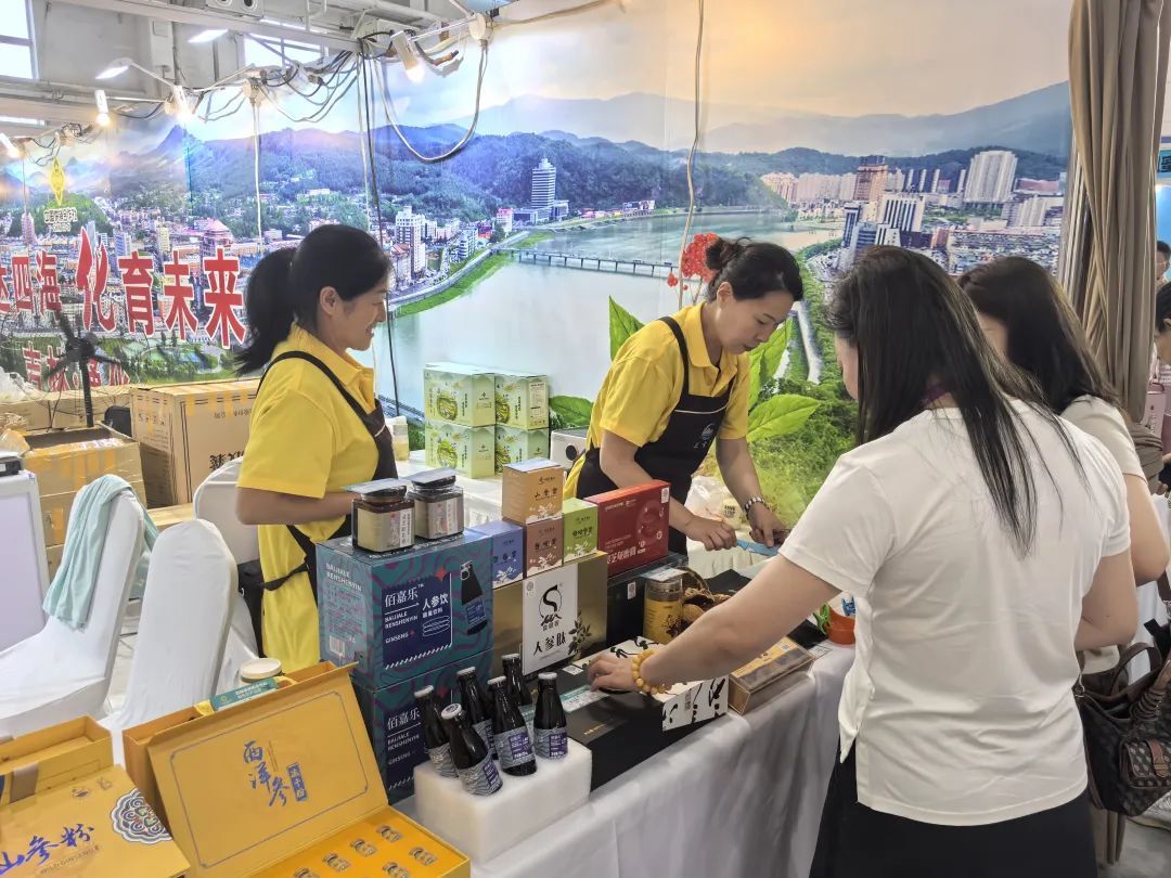 林下山参是通化市最具发展潜力的特色产业、优势产业。益盛药业、国莉参茸等6家核心人参企业带来了一场全产业链盛宴——从传统滋补林下山参,到精深加工的人参蜜片、人参鸡汤、人参鲜椒酱,通化“中国人参之乡”的深厚底蕴与创新活力在此凝聚。每一件产品都是通化人参故事的生动载体,持续提升着市场对“通化人参”的品牌认知与高度赞誉。
