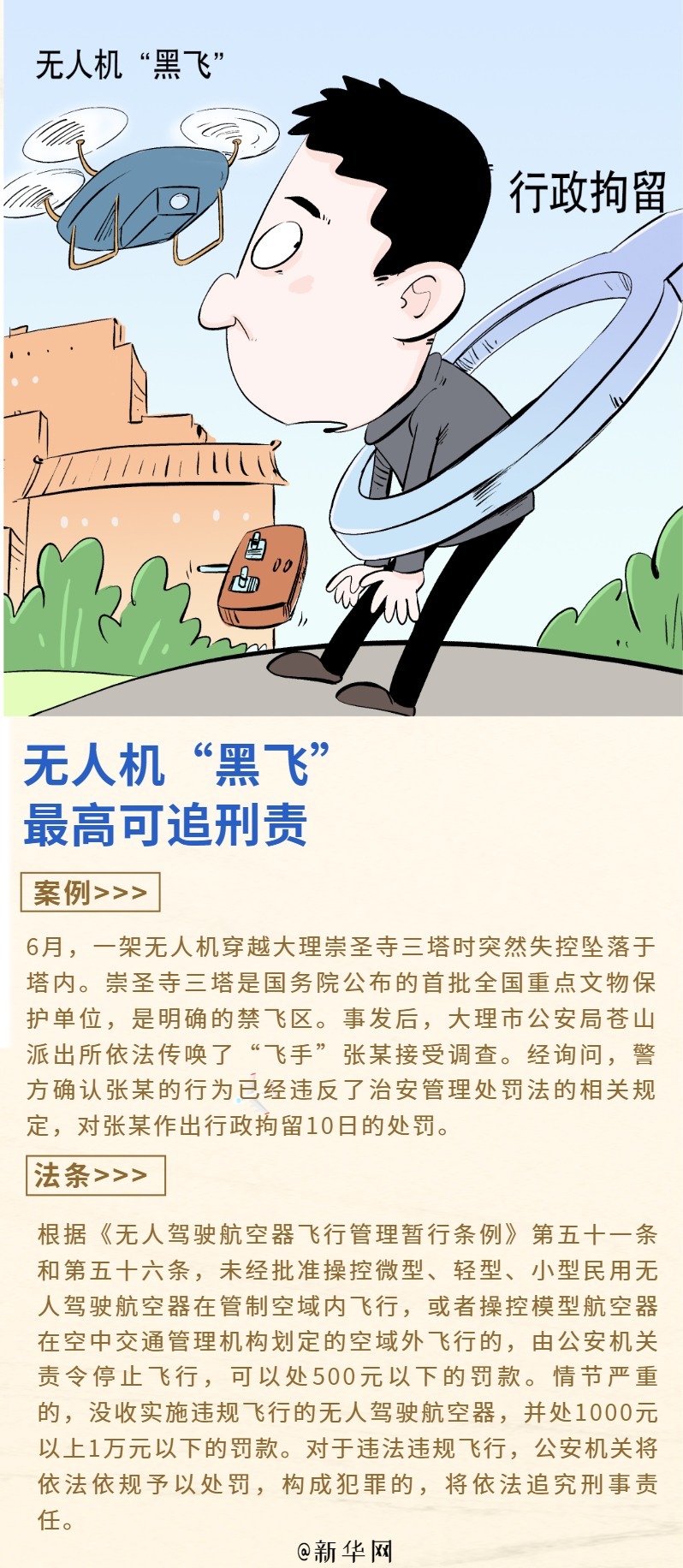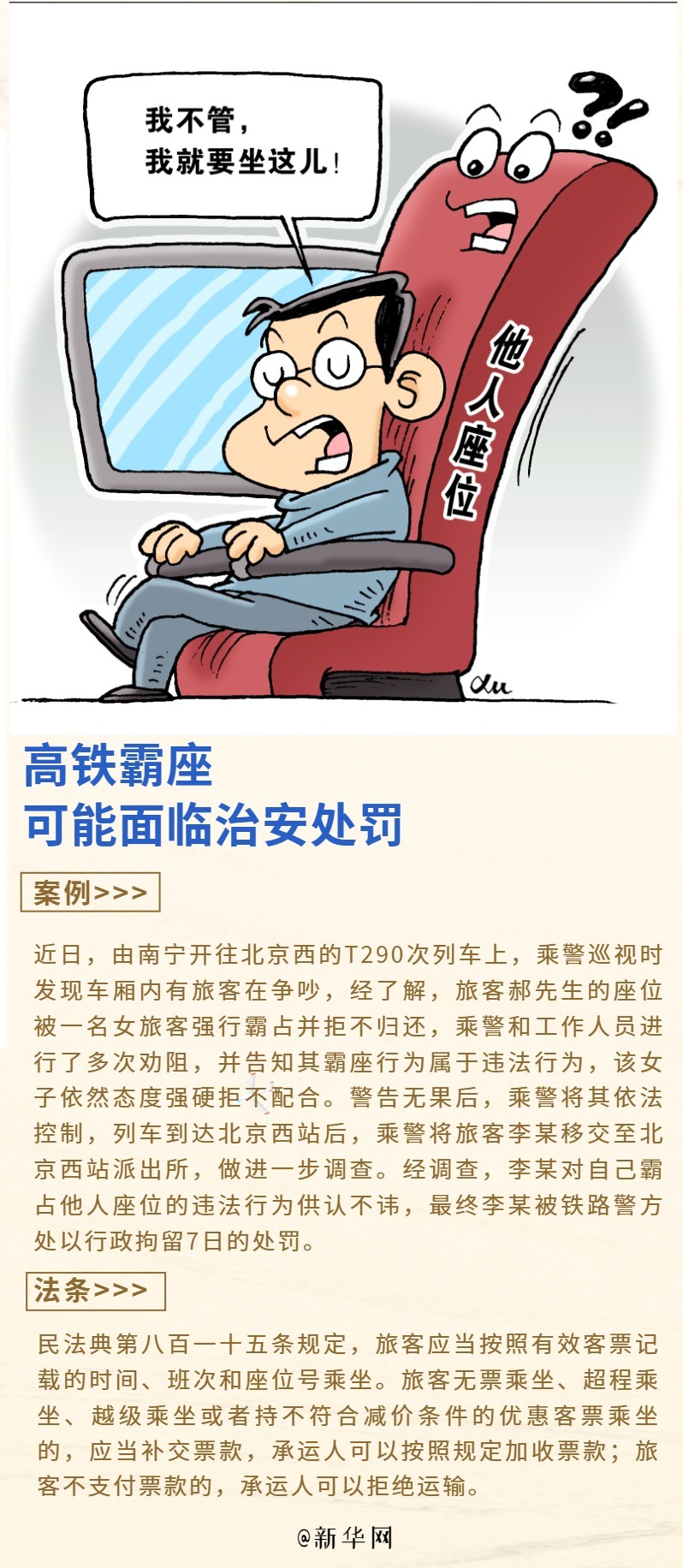 近日,5名游客在八达岭长城乱刻划被罚,旅客强行霸座并拒不归还被行政拘留......暑期出游高峰来临,乱刻乱画、高铁霸座、无人机“黑飞”等行为时有发生。这些不文明行为可能涉嫌违法。一组海报呼吁公众文明出行,既守公德也守法律底线。