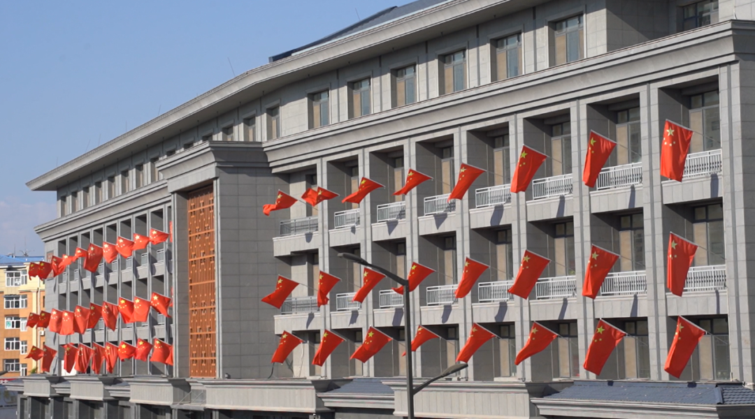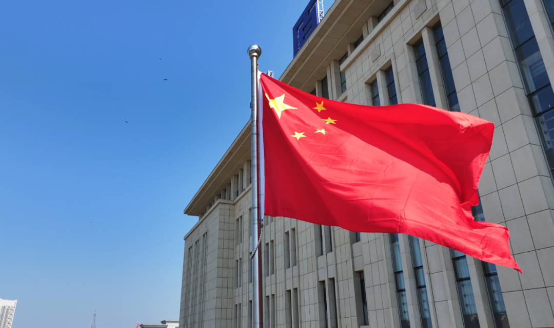 一面面五星红旗迎风飘扬