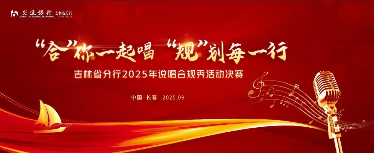 2025年9月,交通银行吉林省分行创新宣教形式,举办“合”你一起唱,“规”划每一行,说唱合规秀活动。活动以“全员合规 价值共创”为主题,聚焦于“讲合规”、“讲法治”与“讲制度”,通过配音秀、诗朗诵、词配乐、三句半、改编歌曲、相声等大家喜闻乐见的形式,从多角度阐释内控合规的重要性,促进干部员工将合规为本牢记心间,使合规文化渗透到日常经营管理的每个环节,坚决守住不发生重大风险隐患和案件的底线。