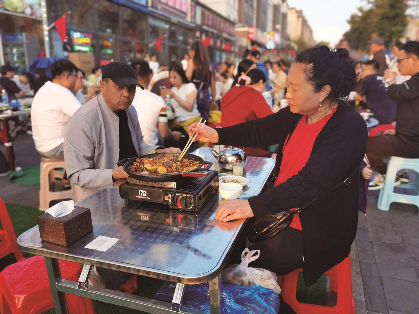 长白山池北区,是长白山保护开发区旅游产业的主阵地,业态创新可谓“亮点纷呈”。恩都里商旅社区、云顶市集、长白山·金1172、雪绒花体验基地等场所,成为游客“打卡”的热门地。国庆假期,长白山管委会商务局延长了当地商业街区的营业时间:恩都里商街调整为10时至22时,云顶市集14时至22时,雪绒花体验基地10时至21时,并安排长白山·金1172演员巡游互动,激活夜间经济。恩都里商街每天推出两场烟花秀和一场演艺活动,绚烂的烟花在林海夜空绽放,引得游客纷纷驻足拍照;云顶市集里,东北特色小吃、手工艺品琳琅满目,游客可以一边品尝美食,一边感受民俗文化;和平山地公园购置升级了越野车辆,规划了多条越野线路,满足年轻游客的“潮玩”需求。