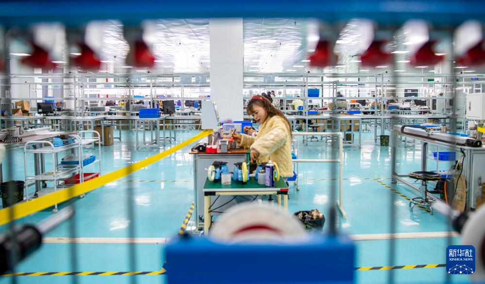 2月24日,在位于河南省商丘市睢县高新技术产业开发区的商丘中轩电子科技有限公司电子线束生产车间内,工人赶制电子排线外贸订单。