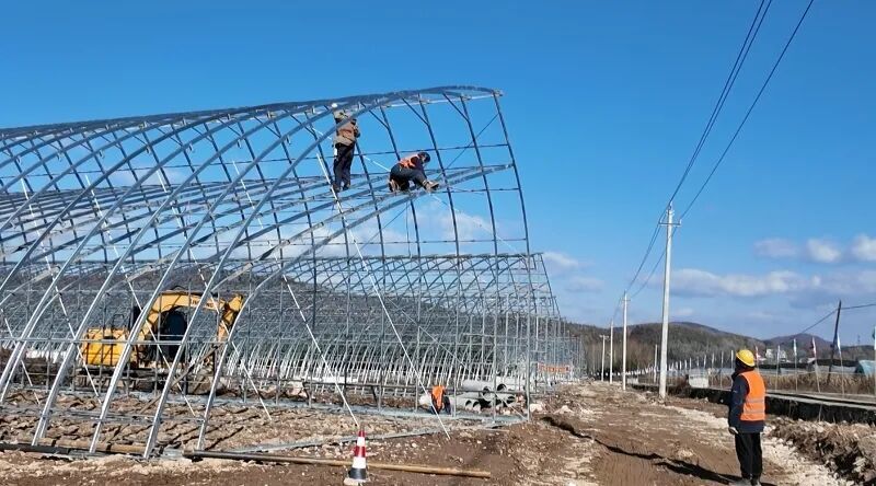 秋风渐凉,走进白山市江源区大石人村,却是一幅火热的施工景象,多台机械正有序作业,工人们忙着搭建温室钢架、铺保温膜。这里就是江源区推进乡村振兴、巩固脱贫攻坚成果的重点项目之一——智慧农业示范基地。