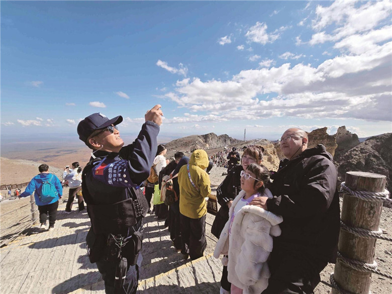 “我们赶在游客入区前全员上岗,通过网格化布警、动态化巡逻、精细化服务,全面提升见警率、管事率,为游客创造安全舒心的环境。”据该派出所副所长、旅游警务管理队队长王紫涵介绍,民警们每天巡逻要走将近3万步,回答游客问路100余次,努力用“辛苦指数”换取游客的“幸福指数”。