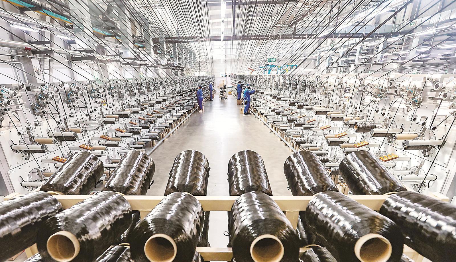 在吉林化纤集团国兴碳纤维公司碳纤维生产线上,碳纤维原丝被生产出来后经过道道工序,最终变身为黑色的碳纤维。我省以科技创新推动产业创新,把加快形成新质生产力作为动能转换的重要抓手,延伸产业链,提高附加值,扩大影响力。 石雷 摄