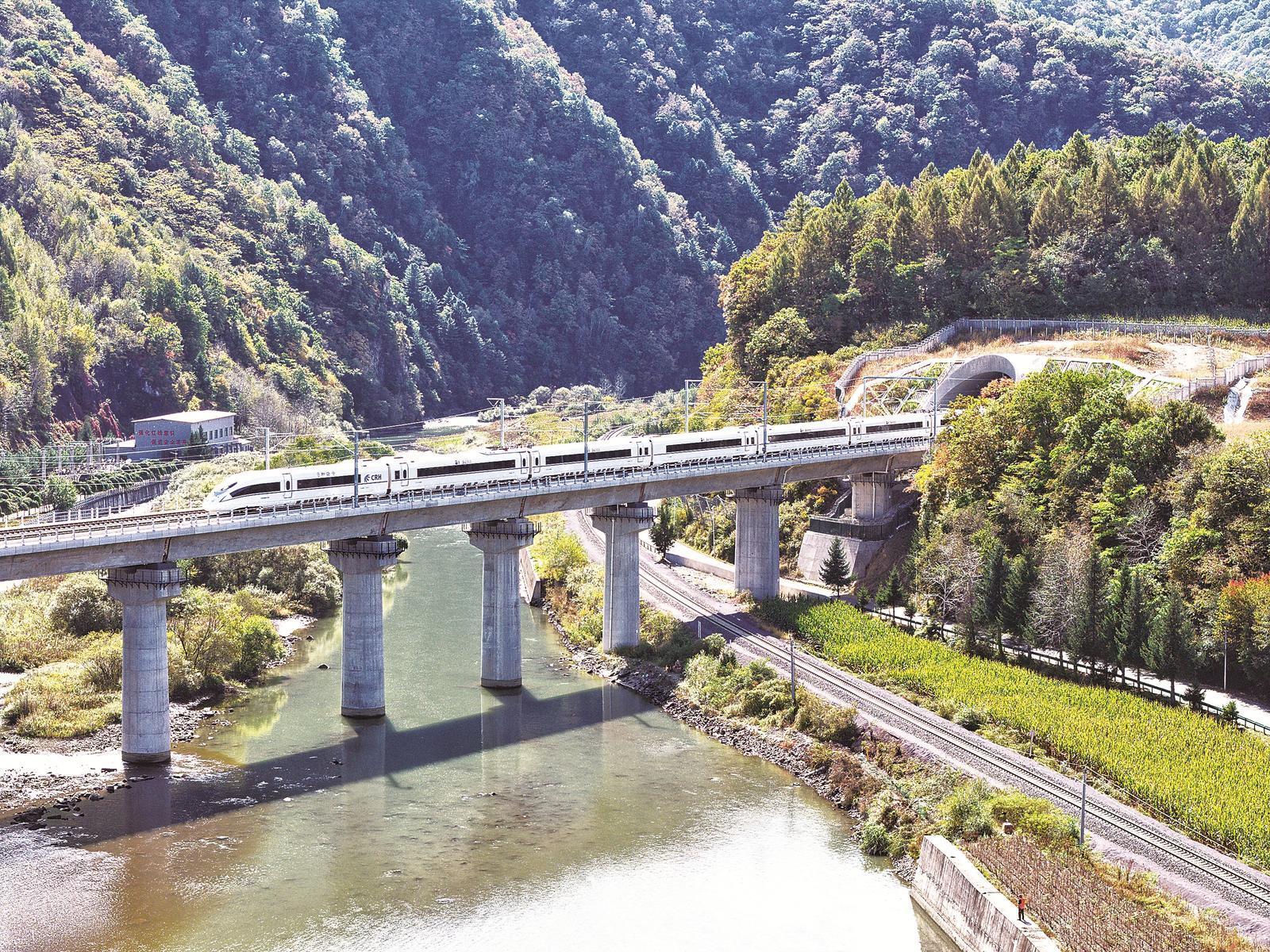 穿梭在崇山峻岭中的沈白高铁。 钱文波 摄