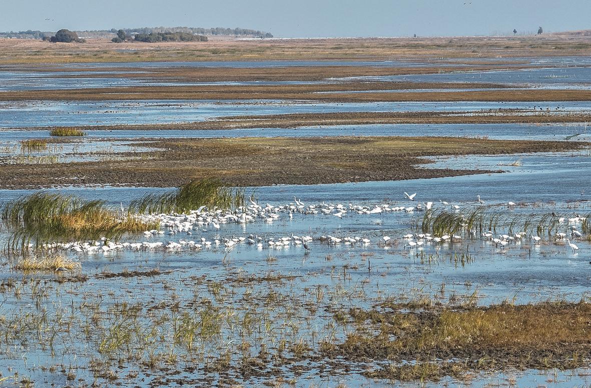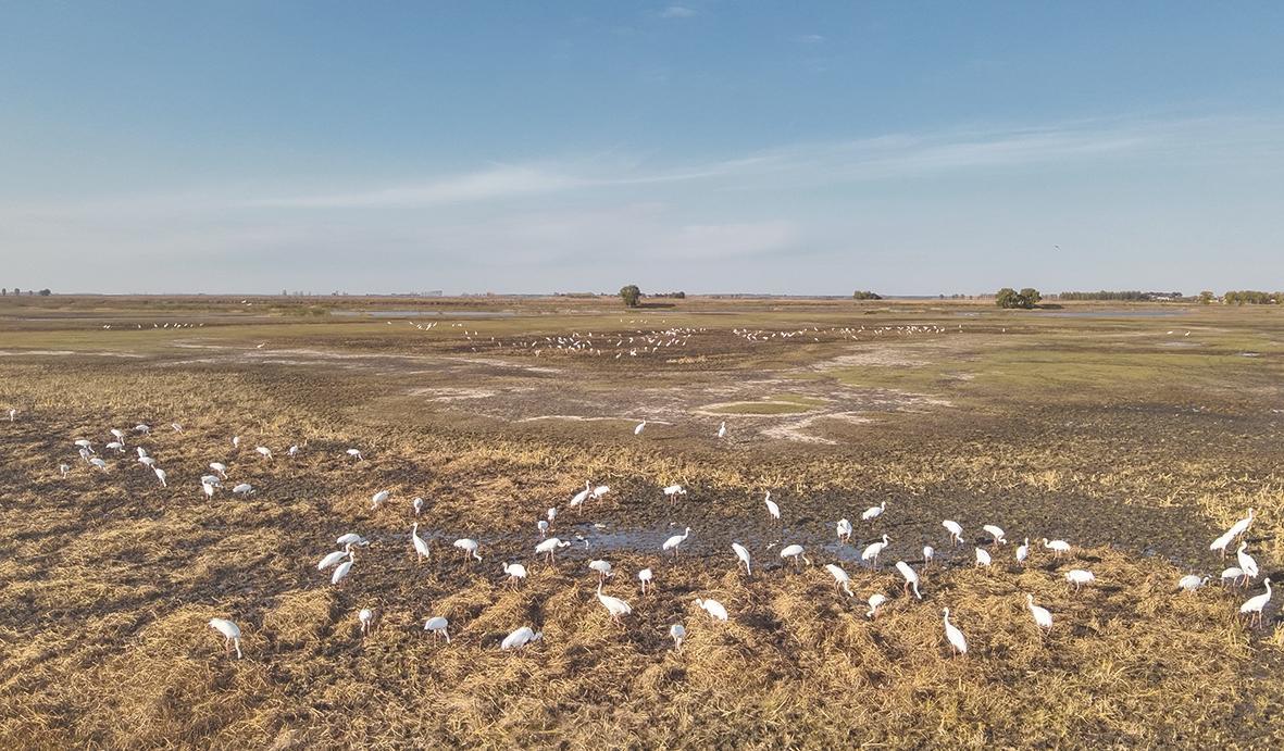 眼下,吉林莫莫格国家级自然保护区内热闹非凡。截至目前,保护区已记录水鸟总数超15万只,其中白鹤1900余只、白头鹤 100 余只、灰鹤3500余只,东方白鹳500余只及小天鹅400多只。值得关注的是,这里承载着全球50% 以上的白鹤停歇量,今年秋季白鹤种群数量较春季的1100余只有显著提升。