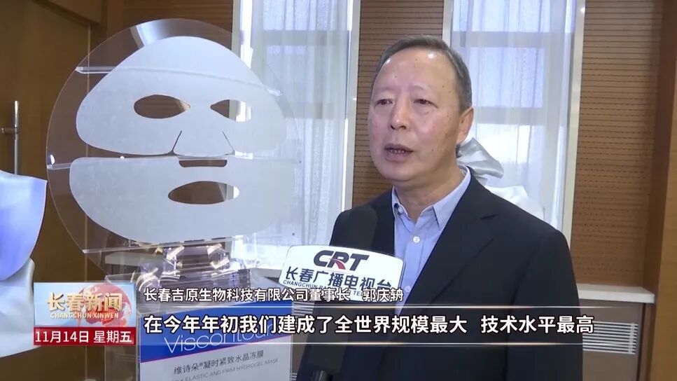 长春吉原生物科技有限公司董事长 郭庆辀:在今年年初我们建成了全世界规模最大,技术水平最高,配套设施最完善的水凝胶材料产业化转化平台。我们已经陆续通过了3项ISO质量体系认证,这是我们今年最大的突破。