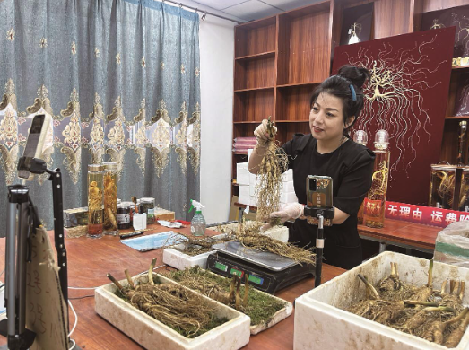 在快大人参交易市场,人参商户电商拓市场。何禹洁 摄