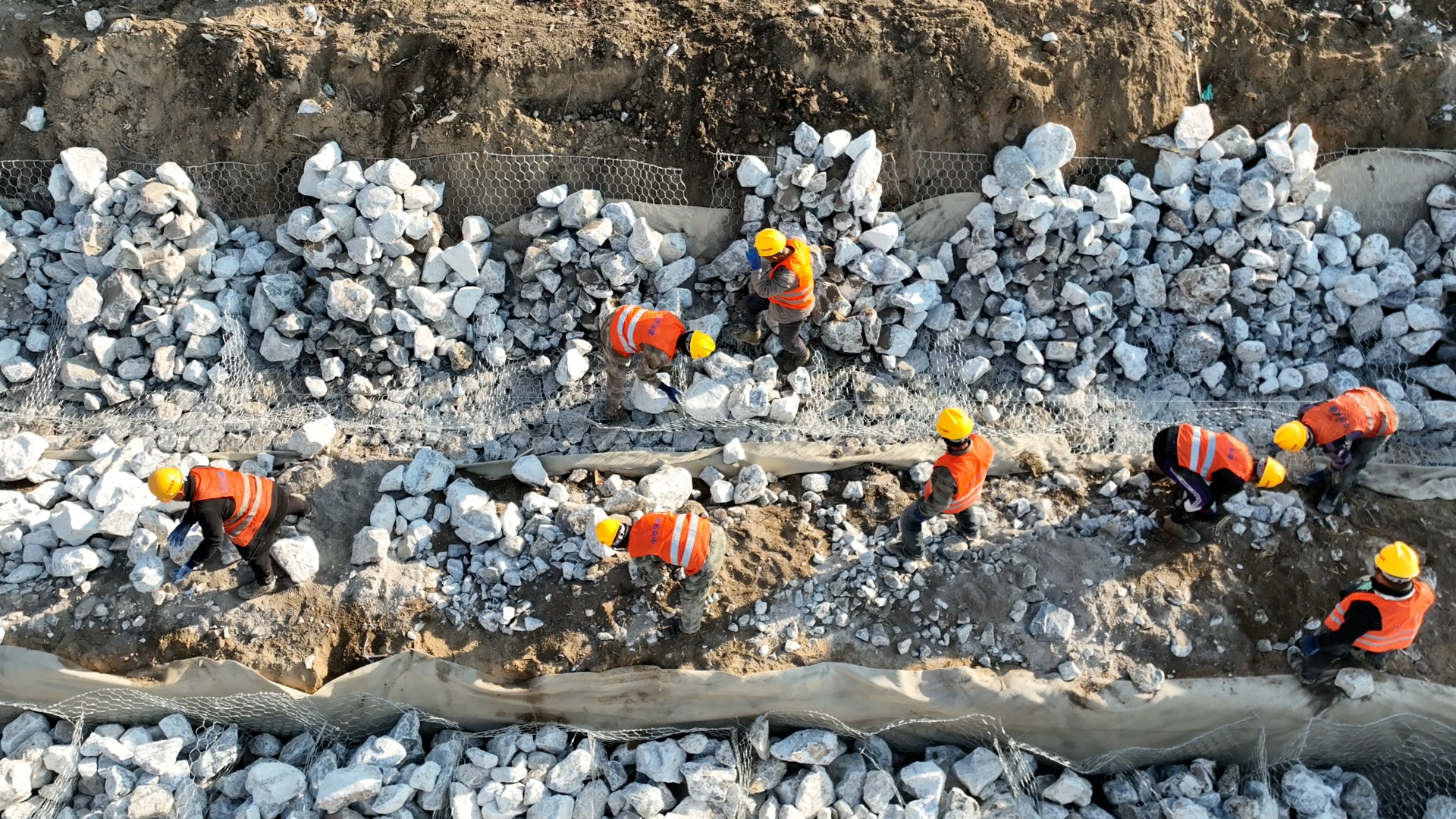 在桑树台镇建设现场,一群特殊的“石匠”正俯身忙碌——他们都是当地村民,经过项目专项培训后持证上岗,熟练进行石笼拼装、石块填充作业。