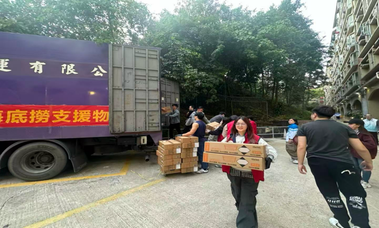海底捞从内地紧急筹备物资,向受灾民众发放物资。