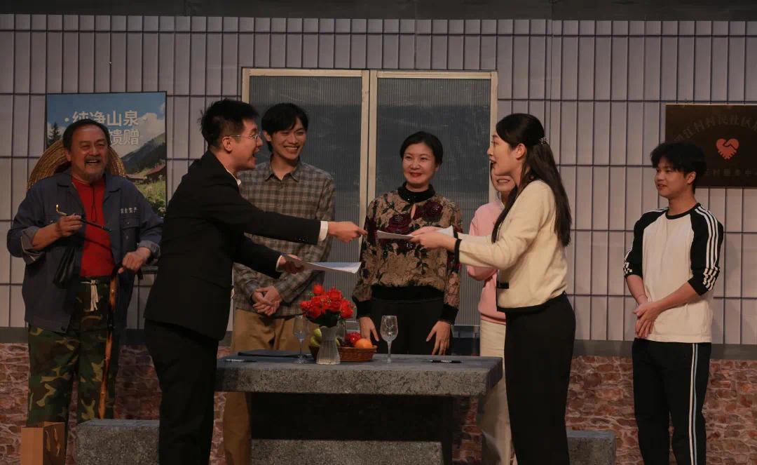 本次演出集中呈现了《小六来了》《小家大事》《苞米与茭白》《幸福村日记》四部精品剧目。领衔作品《小六来了》以误会为引线,演绎驻村第一书记江道远与返乡人才聂小婷的实干故事,复刻出现代版“上错花轿嫁对郎”的喜剧效果;《小家大事》聚焦非遗传承,通过陈老根和陈阳祖孙之间情感羁绊,讲述一场家族记忆与文化坚守的温情故事;《苞米与茭白》以一场突如其来的“猫狗大战”为切入点,勾勒乡村致富能手赵大奎和张小娟的甜蜜日常与生活智慧;《幸福村日记》则通过讲述东北的幸福村里在中秋佳节发生的意外事件,凸显村民勤劳奋进的乡村风貌。四部作品均遵循“扎根人民、扎根生活”的创作原则,将东北风俗与时代主题深度融合,让观众在笑声中感受乡村振兴的鲜活实践与奋进精神。