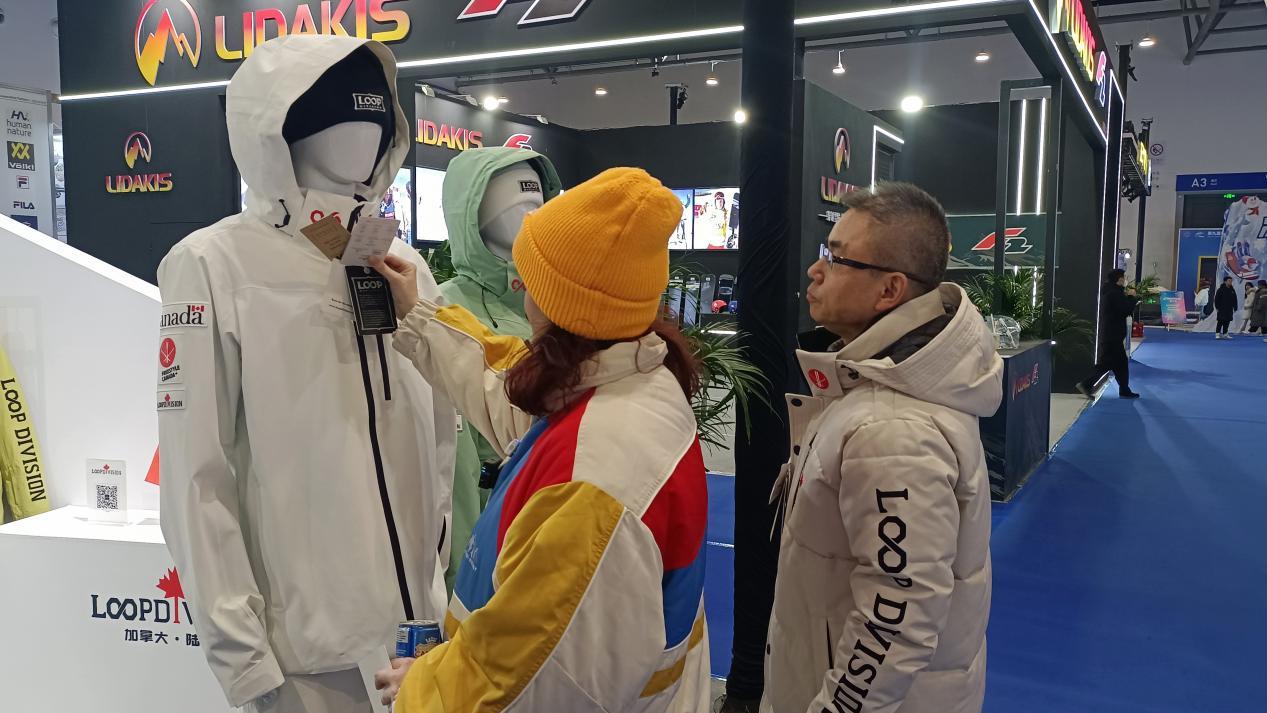 在滑雪装备区,惊叹声与笑声不时响起。来自加拿大的网络达人阿莲(ALEXANDRA LOUISE OGDEN)对于展会展示的防寒服所应用的面料与科技赞叹不已。“这是一个国际化的展会,我看到了专程来看各种品牌的国际访客。中国在推广滑雪运动方面做出的努力,使得原本高消费的滑雪变得更加普惠。”阿莲说。