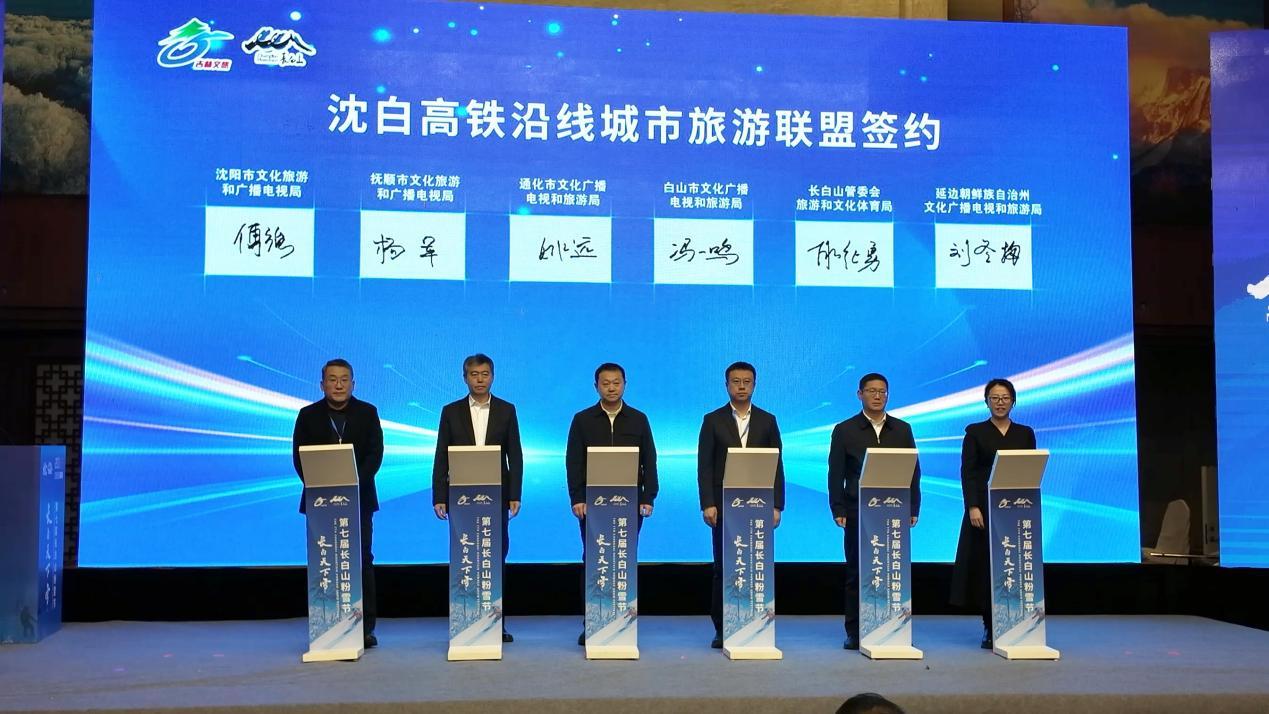 此次签约的沈白高铁沿线城市旅游联盟,汇聚了沈阳市、抚顺市、通化市、白山市、长白山管委会、延边朝鲜族自治州六地文旅部门。
