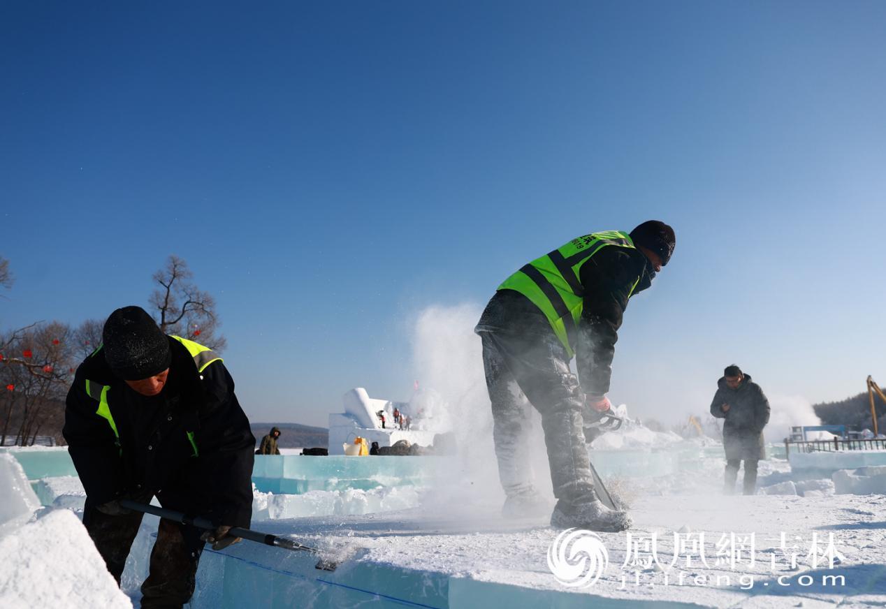 12月26日,第24届瓦萨滑雪节核心冰雪景观正在净月潭内紧锣密鼓建设中。