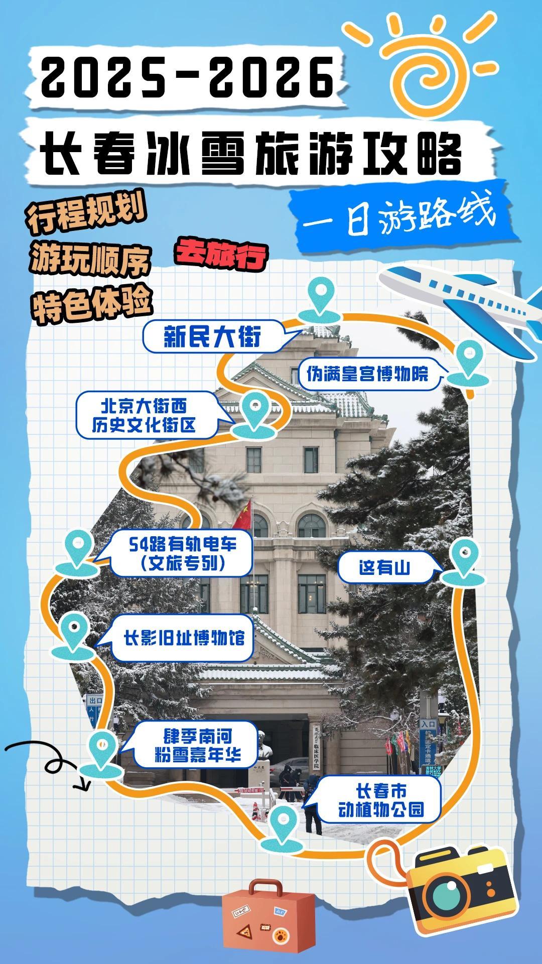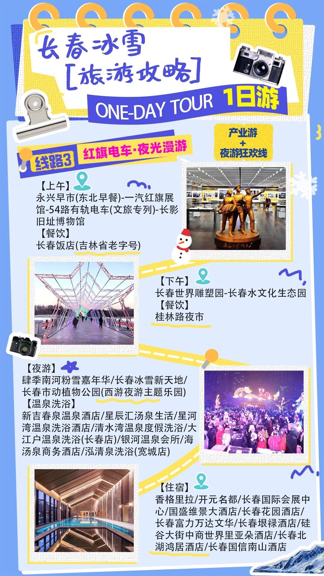 一天体验长春的时空交错!上午在伪满皇宫博物院、历史街区感受历史厚度,下午打卡电影与潮玩地标。夜晚一头扎进冰雪乐园,最后用热腾腾的涮肉和暖乎乎的温泉为完美一日收尾~🥩♨️