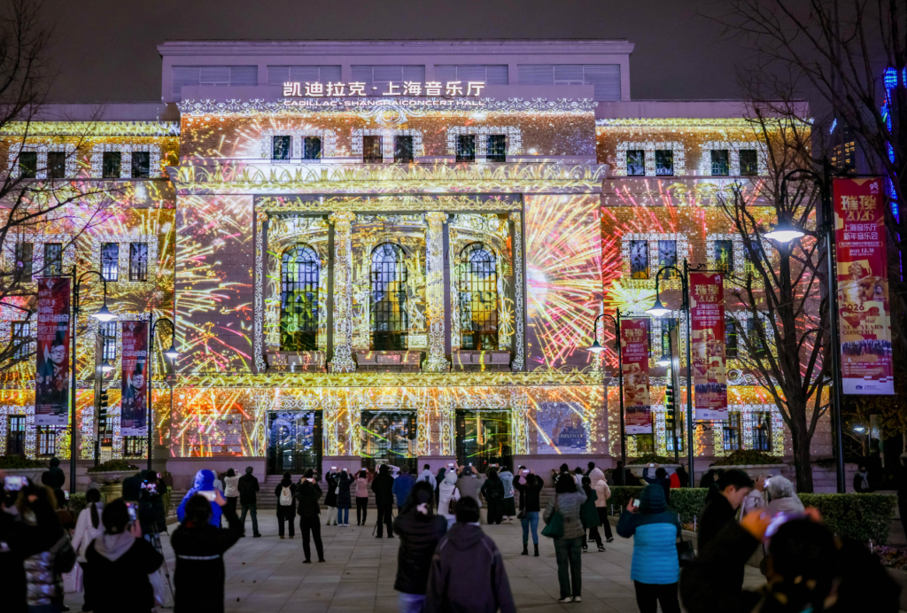 12月31日、1月1日18:00起,灯光秀在音乐厅南面墙闪耀。观众可在演出入场与散场期间,邂逅这场光影秀。其中,12月31日的灯光秀持续至次日00:30,1月1日的灯光秀则于21:30结束。