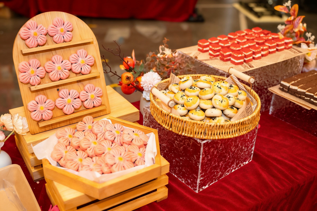 结合演出,九棵树还打造了“桃花流水宴”,令观众直呼“太美了”。非遗摊位前也是人声鼎沸,不少观众近距离观赏起了奉贤的土布染织技艺与琉璃烧制技艺。现场还邀请了奉贤非遗“李记羊肉”赠汤,浓浓的暖香与苏州吴江的茶点甜香交织在一起,为冬日增添了几丝暖意。