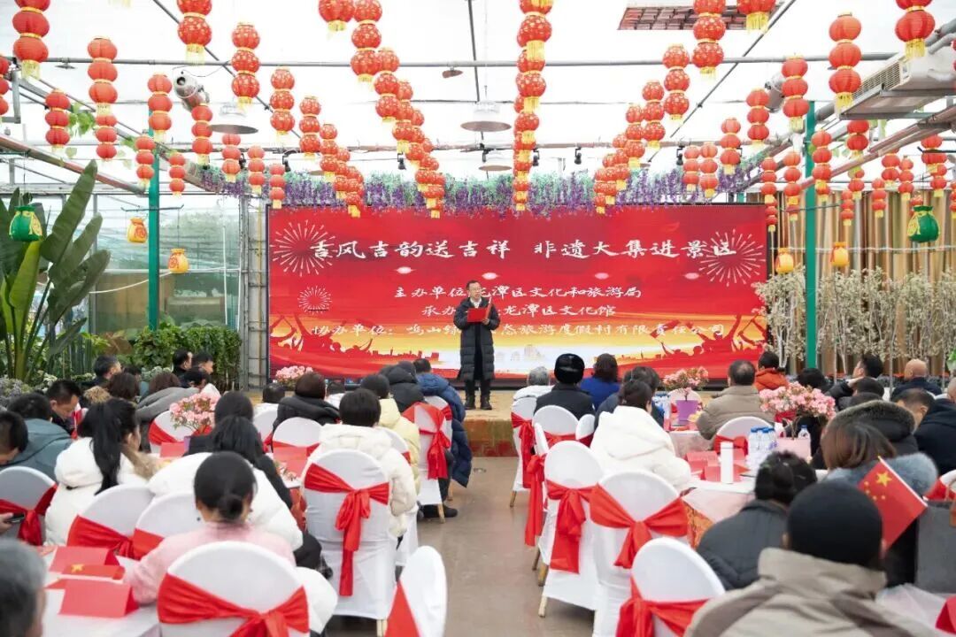 随后,精彩纷呈的抽奖环节接连上演,欢乐祥和的氛围洋溢全场。龙潭区文化馆书画展专题片与鸣山绿洲文旅宣传片轮番展播,通过光影交织,生动展现了龙潭深厚的文化底蕴与鸣山绿洲的生态魅力,令观众流连忘返。