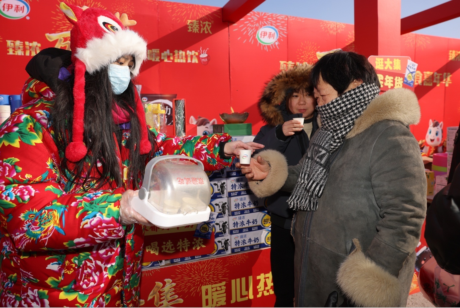 “年俗荟”区域则侧重于文化体验与互动乐趣,热闹非凡。非遗展示区邀请了多位非遗代表性传承人现场献艺,东北特色烹饪、编织、糖葫芦、糖人、剪纸、面塑等精湛技艺,让市民游客近距离感受中华优秀传统文化的魅力,部分精美的作品还可直接选购带回家。喜帖街区一片红火,对联、年画、花灯等各式年俗用品款式多样,浓浓的年味扑面而来,人们在此精心挑选年货,让记忆中的年味照进现实。由伊利集团倾情赞助支持的年俗游戏体验区人气爆棚,马年上上签、好运投壶、猜灯谜、打年兽、许愿墙、开心套元宝等互动项目,让大人小孩都能参与其中,在欢声笑语中收获满满的乐趣与新年祝福。