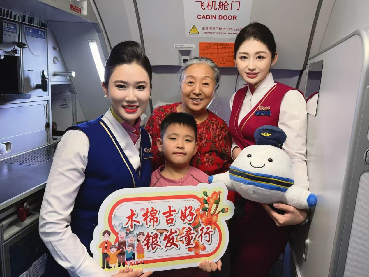 春运将至,为做好老人、儿童等重点旅客出行保障,南航吉林分公司在长春至三亚、广州等航班上,开展“木棉吉好 银发童行”主题航班活动,推出“一声问候、一份餐食、一场互动”的“三个一”专属服务,为老人与儿童旅客铺就舒适而充满温情的空中之旅。