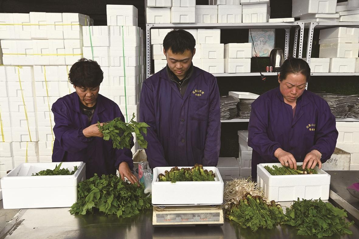 产业链条的不断延伸,让棚膜经济的附加值持续提升。在加工环节,支持经营主体建设清洗、包装、保鲜、烘干等配套设施,开发真空包装蔬菜、冻干山野菜等产品,延长产业链、提升价值链;在物流环节,依托区域交通优势,配套建设冷链仓储设施,打通“从田间到餐桌”的物流通道,保障农产品新鲜上市;在销售环节,构建“线上+线下”多元化销售网络,线下依托农贸市场、商超、直营店扩大本地市场份额,线上通过电商平台、直播带货等新媒体手段拓宽销售半径。泓泰山野菜的草莓、圣达农业园的反季玫瑰通过直播带货,不仅畅销省内,还远销辽宁、黑龙江等地。