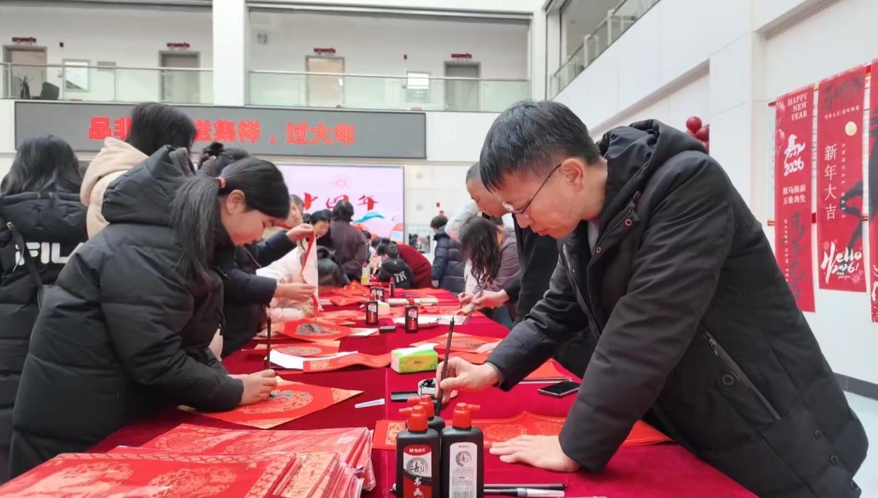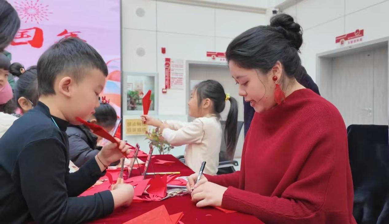 活动现场,非遗传承人手把手传授传统技艺,少年儿童积极参与体验,专注完成吉祥图案创作,展现了对传统民俗的喜爱。书法桌前,资深书法人士现场书写春联,以笔墨传情,弘扬中华优秀传统文化,营造了欢乐祥和的节日氛围。从丝线缠绕编出精美中国结,到手绘非遗图案红包、拼接喜庆灯笼,大家在老师的指导下动手实践,一步步解锁非遗技艺,现场欢声笑语不断,处处洋溢着温馨热闹的氛围。