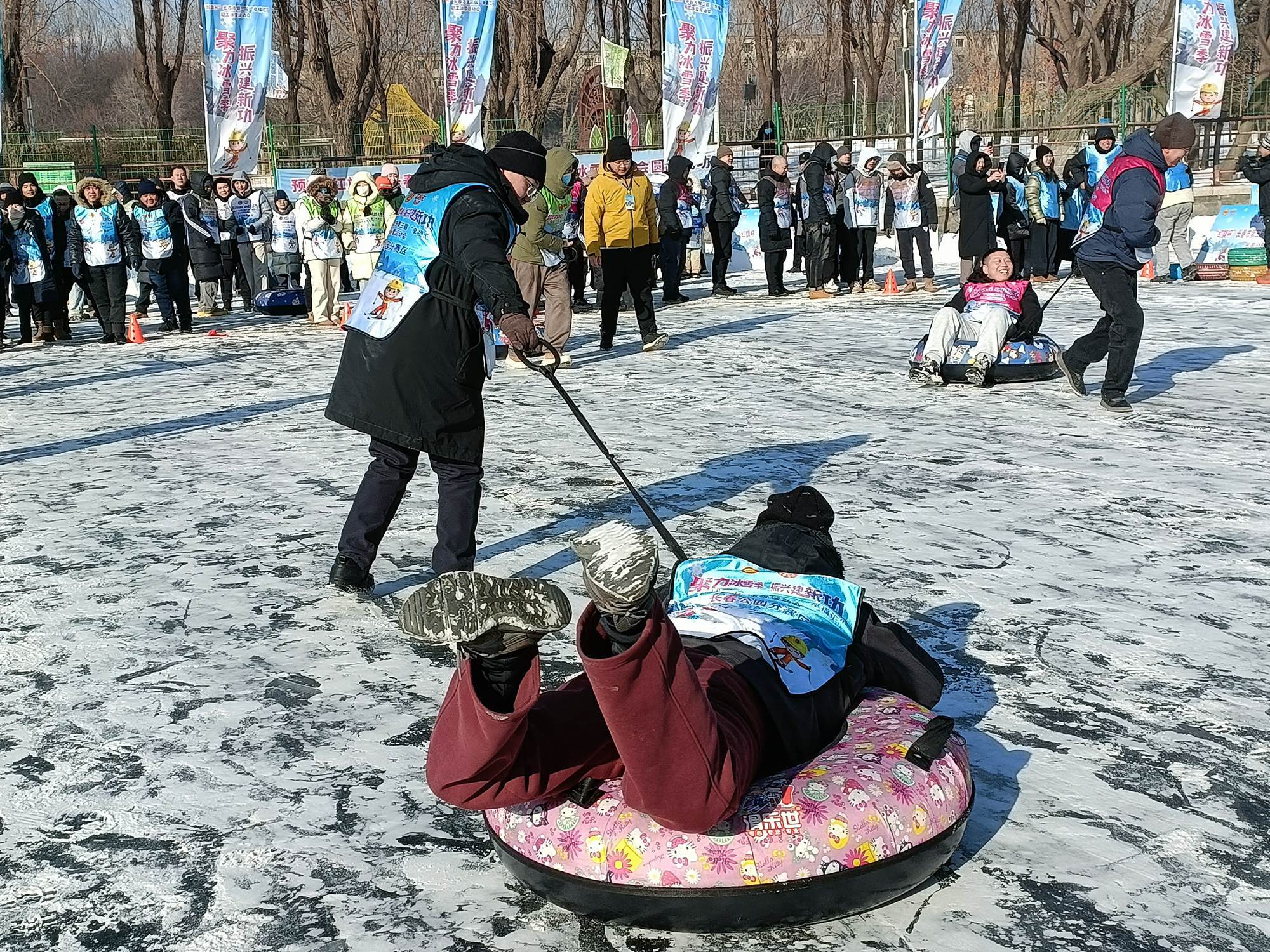 为彰显北国春城的冬季魅力,丰富市民文化生活,在长春市农林水地能源工会的指导下,长春公园“冬之韵・雪悦燃冬”冬季系列活动于1月28日开幕。活动以冰雪为媒、欢乐为核,融合游玩、竞赛、文化体验三大板块,打造了全龄友好的综合性冬季文旅场景,吸引众多市民游客踊跃参与。