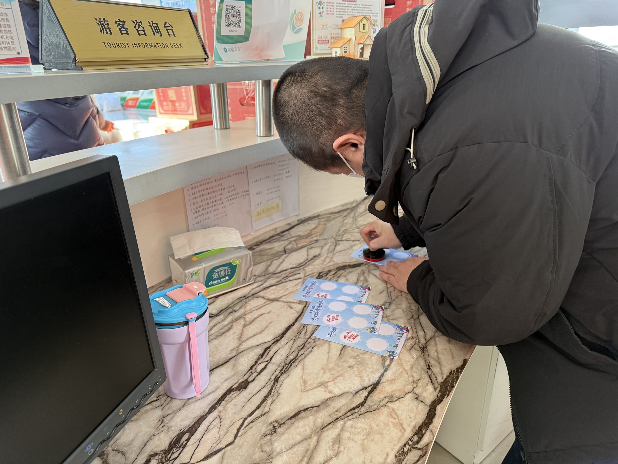 “集章寻趣・悦动冬旅”打卡活动率先登场,成为活动亮点之一。长春公园西门“幸福汇”服务站、职工之家等四大主题打卡点各具特色,游客可免费领取“冰雪印记”集章卡,在体验暖心服务的同时逐一打卡集章,解锁冬日互动乐趣。同步开放的3万平方米冰雪主题体验区,为这场打卡之旅增添了沉浸式游玩体验,不少家庭携手参与,定格下温馨瞬间。