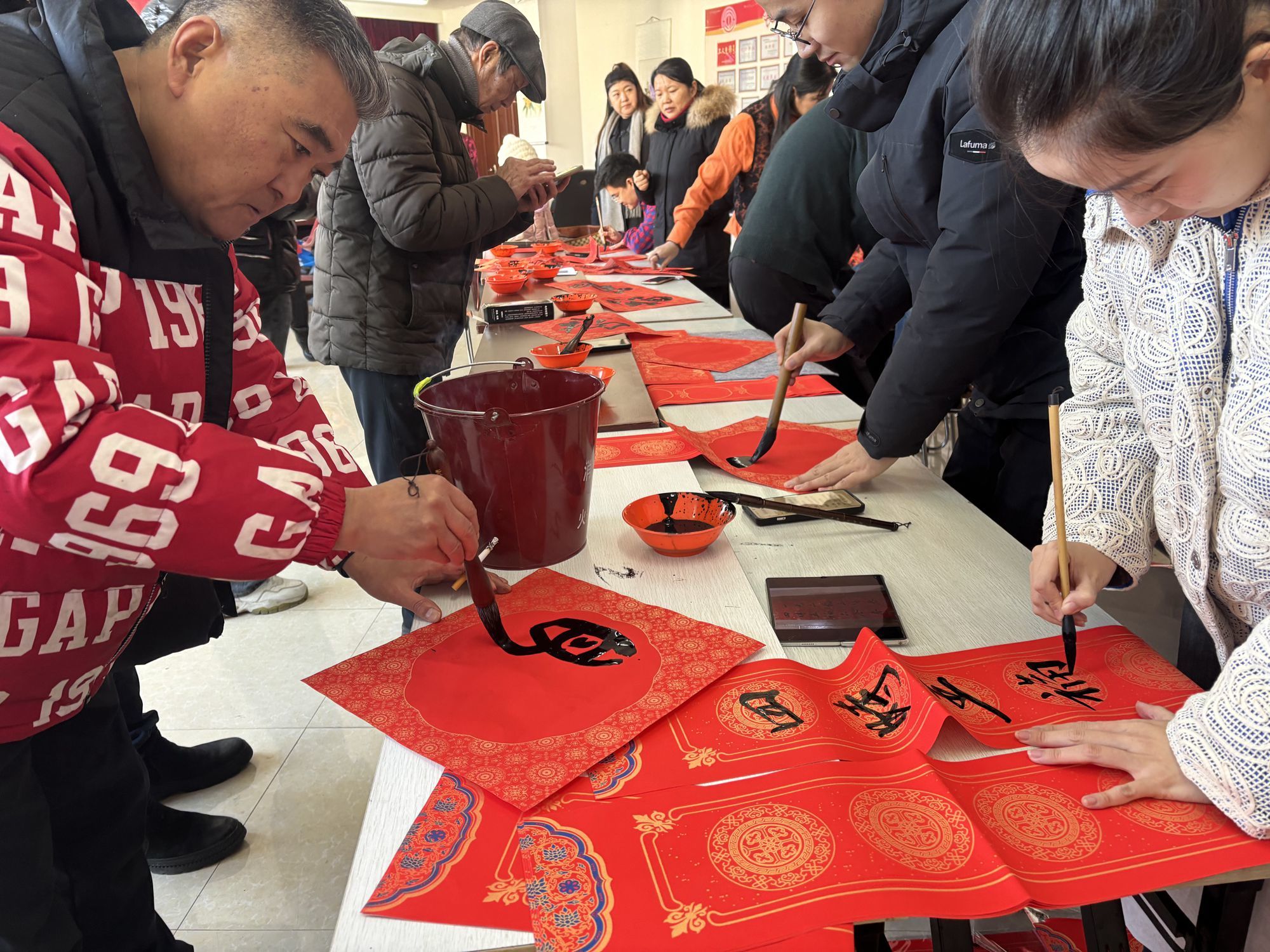 冰雪盛宴之外,浓厚的文化韵味为活动添彩。职工之家周边,工作人员用红蜡手工塑形打造的“寒梅傲雪”景观,成为市民拍照留念的热门点位,红蜡映雪尽显冬日雅致;会议室展出的50余幅冰雪、年俗主题书画作品引人驻足,6位书法老师现场挥毫泼墨,免费为市民书写春联福字,排队领取的市民络绎不绝,一幅幅作品承载着新春祝福,传递出满满暖意。