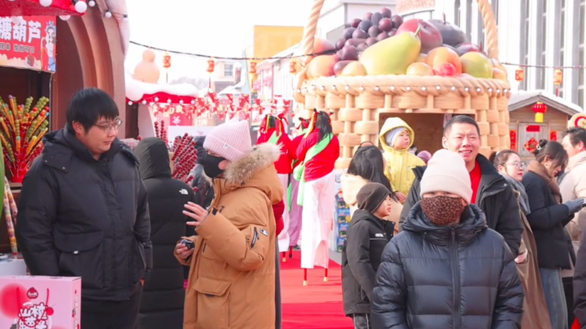 “一摊一景”的沉浸式场景吸引市民、游客摩肩接踵。名优特产区内,葡萄酒、白小桃等本地好物琳琅满目,为市民、游客提供一站式年货采购渠道。小吃美食区内,炸串、烧烤等特色美食香气扑鼻,市民、游客三五成群围在一起,大快朵颐;手工艺品区剪纸摆件备受青睐;围炉煮茶、糖人制作等项目,让市民、游客在冬日里既能感受烟火气,又能体验慢生活的惬意。