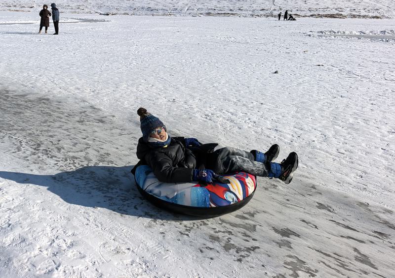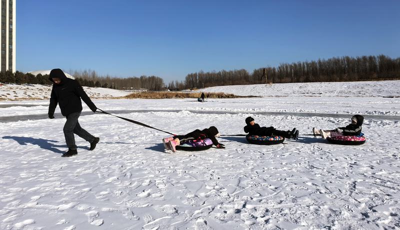 近日,东新开河长春经开区段的河面冰面,成为市民们的免费户外冰上乐园,孩子们在这里滑雪圈、抽冰嘎,家长们也加入其中,拉着雪圈、爬犁带孩子们滑行。蓝天白雪相映,勾勒出一幅东北冬日童趣画卷。