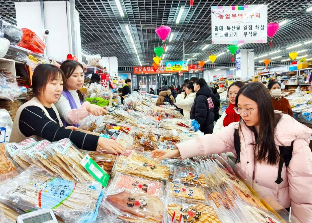 除此之外,延吉河南市场、东市场也是人潮涌动,拎着大包小包的市民往来穿梭,袋子里装着咸菜、明太鱼、鲜肉、蔬菜,也装着对团圆的期盼。这红火的采购场景,正是延吉人对新年最朴素的表达——年味,就在这热热闹闹的人间烟火里。