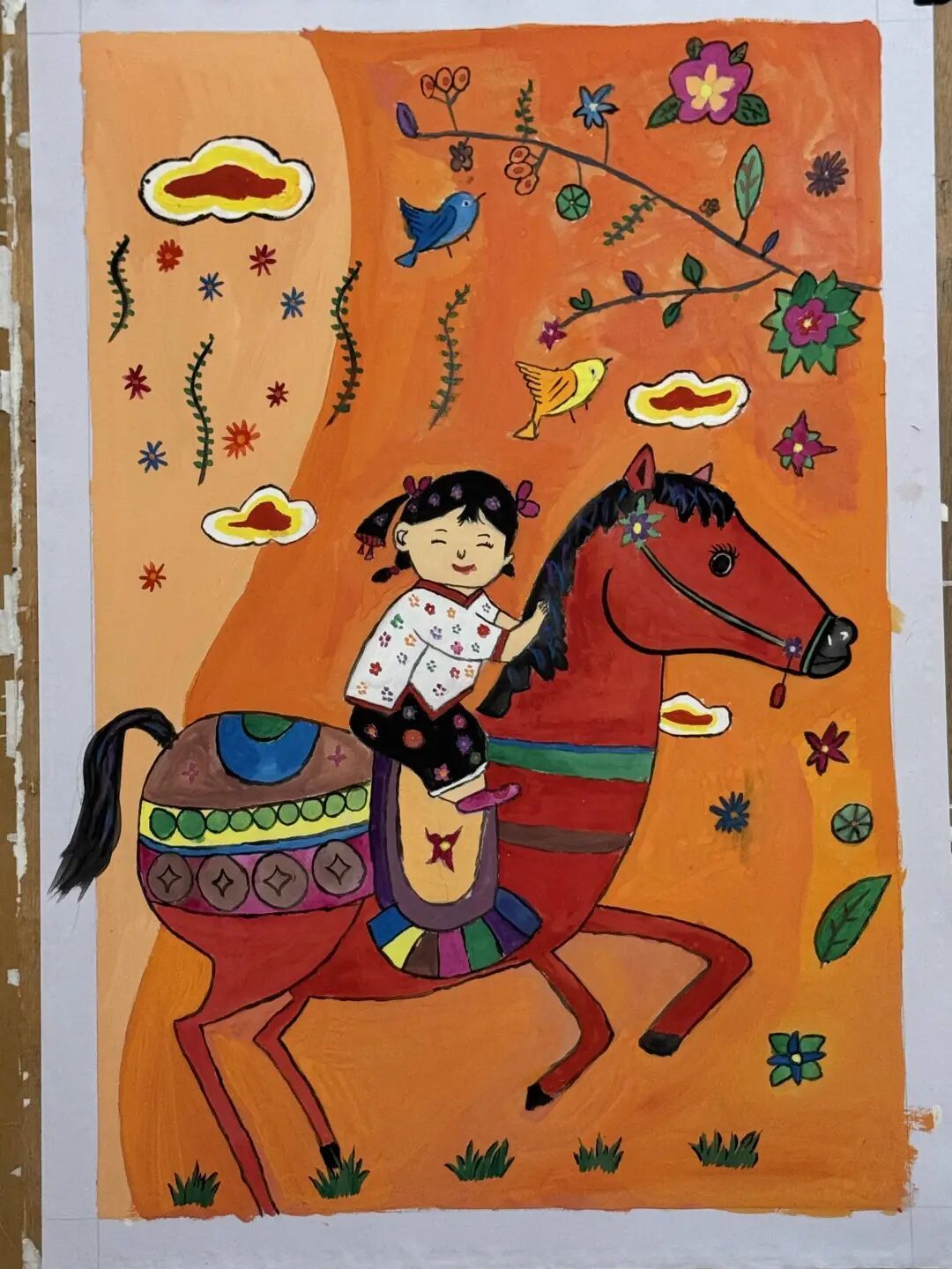 姜海杰深耕农民画领域二十余年,他笔下的作品总能以细腻笔触捕捉生活本真。这次,他将对马年新春的美好期许与乡土生活的鲜活气息相融合,以农民画独有的艺术语言,表达对马年新春的美好祝福。