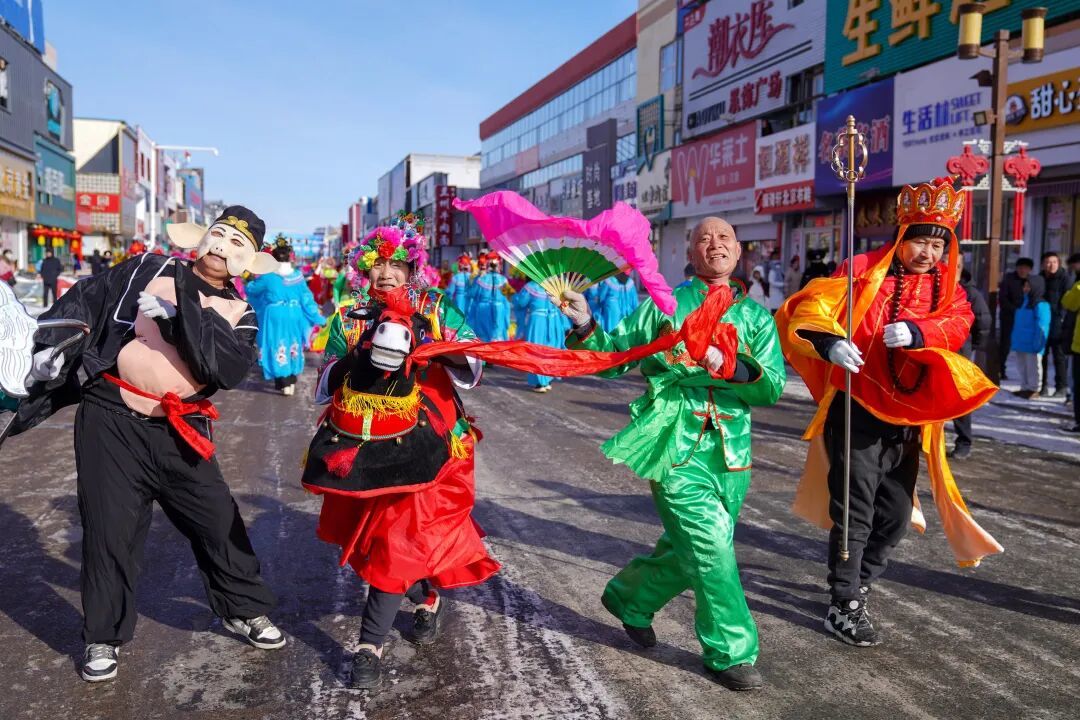 活动于9时开始,整个巡游队伍沿着精心规划的路线行进,途经超市、商场等人群聚集地。在行进过程中,秧歌队员们舞姿翩翩,彩绸飞舞,展现了东北大秧歌的独特魅力,赢得了现场观众的阵阵掌声和喝彩声。
