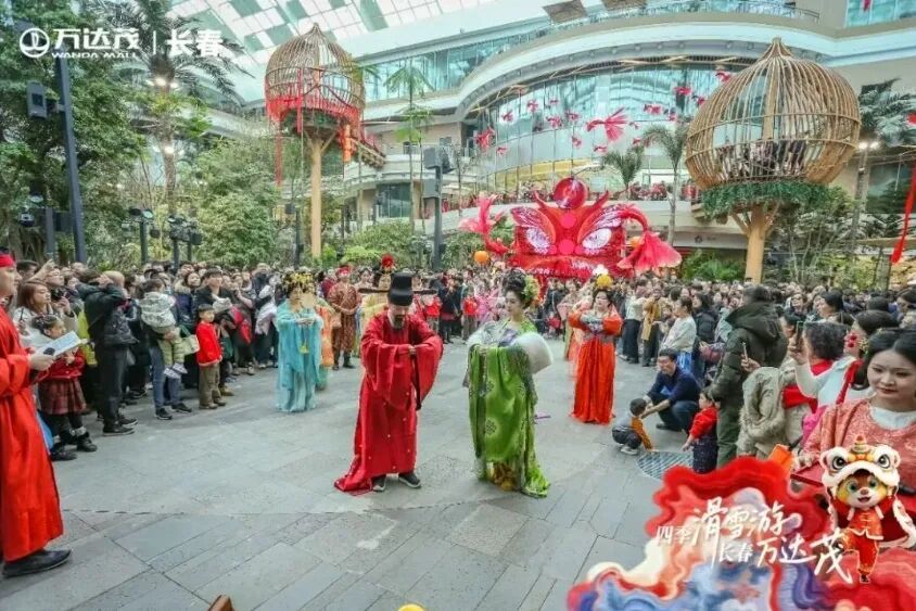 为让年味更有新意、更具温度,全市商贸场所推出一系列沉浸式、互动式活动,欧亚卖场“金马迎春”小红书互动活动引爆年轻客群打卡热潮,皮影戏等非遗展演让孩子们感受传统文化魅力,“嗨吃嗨玩欢乐券” 贴心送上消费福利;这有山开山仪式上,漫天手拧花如蝶纷飞,仿生四足机器人“科技萌宠”腾跃拜年、温情互动,“新年利是包”暗藏惊喜;万达茂“盛唐长安游园会”震撼启幕,10大非遗技艺集中展示,NPC巡游、雨林祈福大典沉浸式上演,“游园+购物+互动”创新模式让消费成为充满乐趣的文化体验,暖心服务在每个环节自然流露。