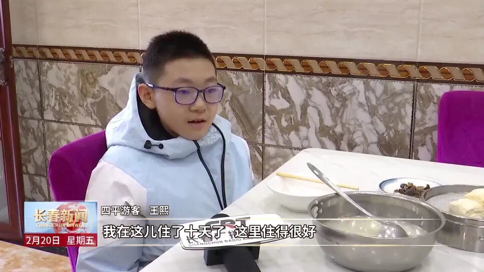 四平游客 王熙:我在这儿住了十天了,这里住得很好,庙香山滑雪场也很好。