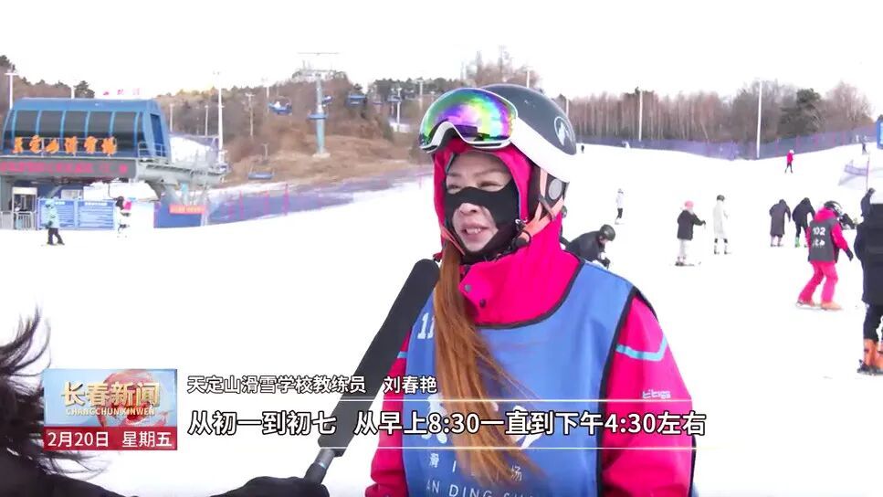天定山滑雪学校教练员 刘春艳:从初一到初七,从早上8:30一直到下午4:30左右,课差不多都约满了,因为咱们现在客流量非常大,都是一些南方来的朋友。