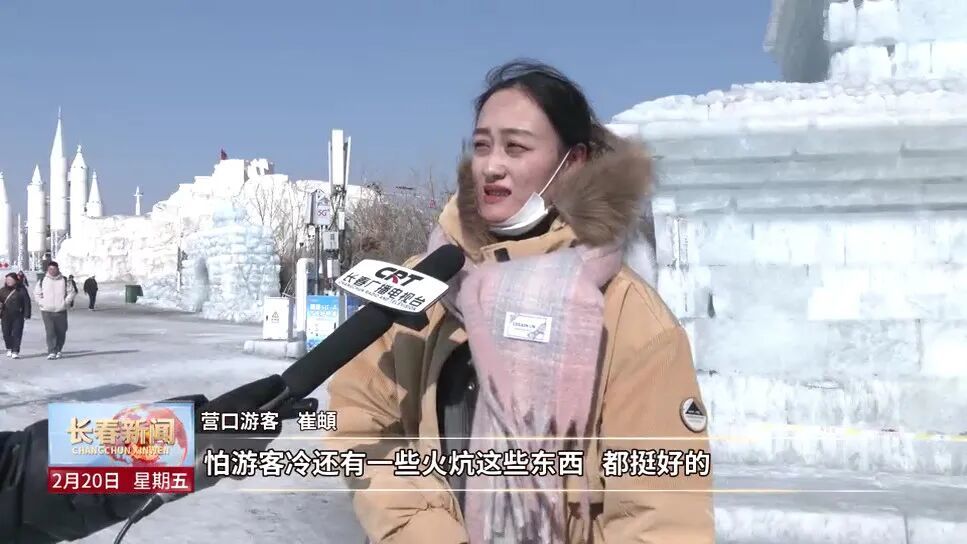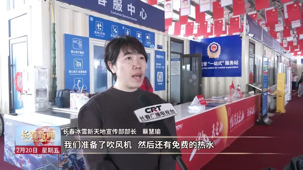 长春冰雪新天地宣传部部长 蔡慧瑜:我们准备了像吹风机,还有免费的热水。一些游客弄湿了衣服和鞋,为他们烘干做了这样的准备。