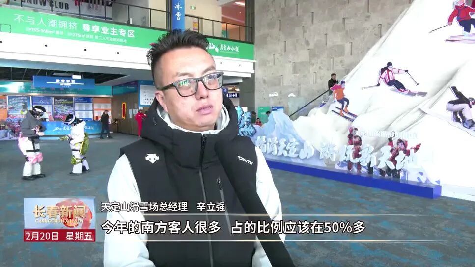 天定山滑雪场总经理 辛立强:今年的南方客人很多,占的比例应该在50%多了,春节期间我们又增加了大约20%的教练员,现在我们教练员应该在140名左右。