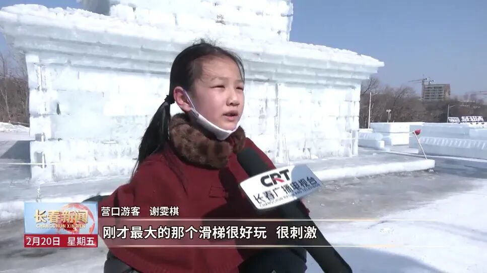 营口游客 谢雯棋:刚才最大的那个滑梯很好玩,很刺激。