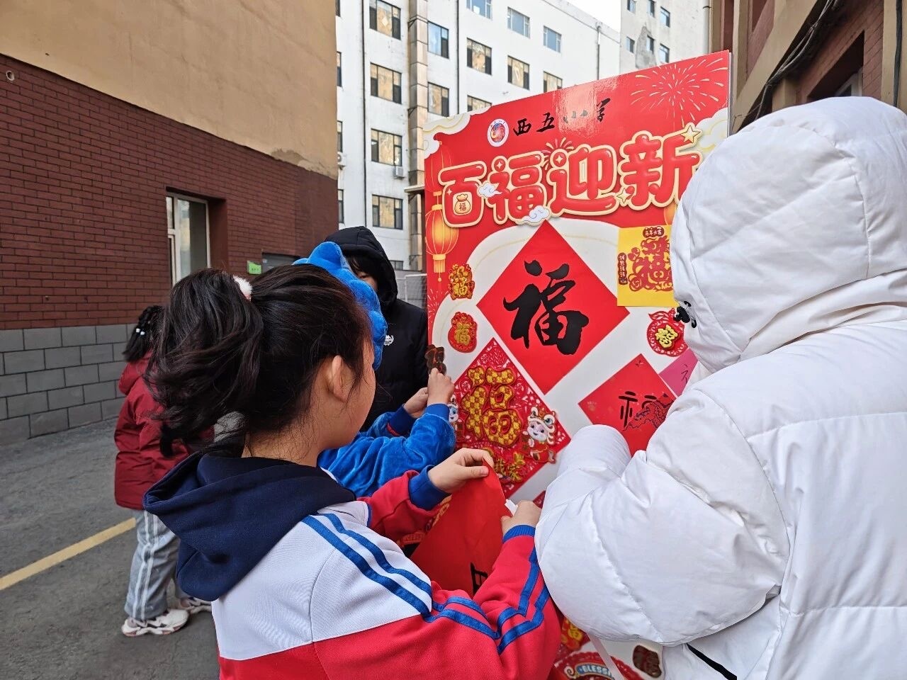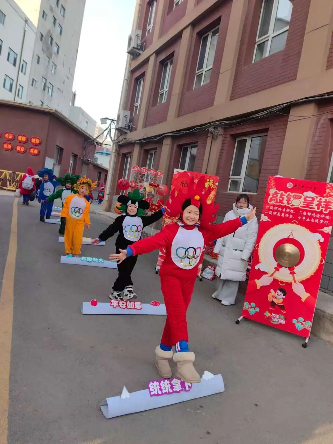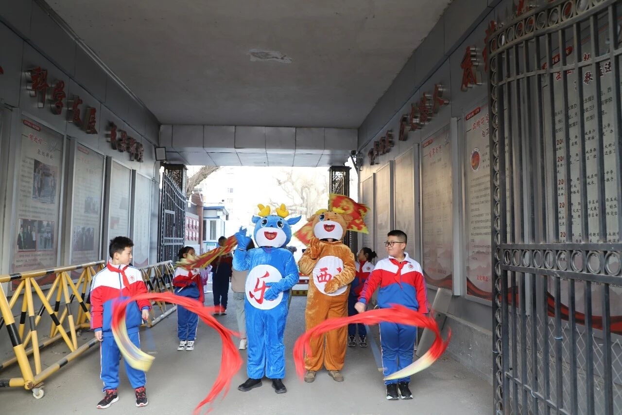 开学当日,校园内处处洋溢着喜庆祥和的氛围。校门口布置一新,象征学校绿色教育理念的“五娃”形象生动亮相,热情迎接每一位学子归来。师生携手挂灯笼、贴福字,火红的装饰与清脆的锣声相映成趣,奏响新学期奋进序曲。学校还为学生准备了寓意甜蜜的糖果,将美好祝愿融入细节,让开学首日充满仪式感与幸福感。