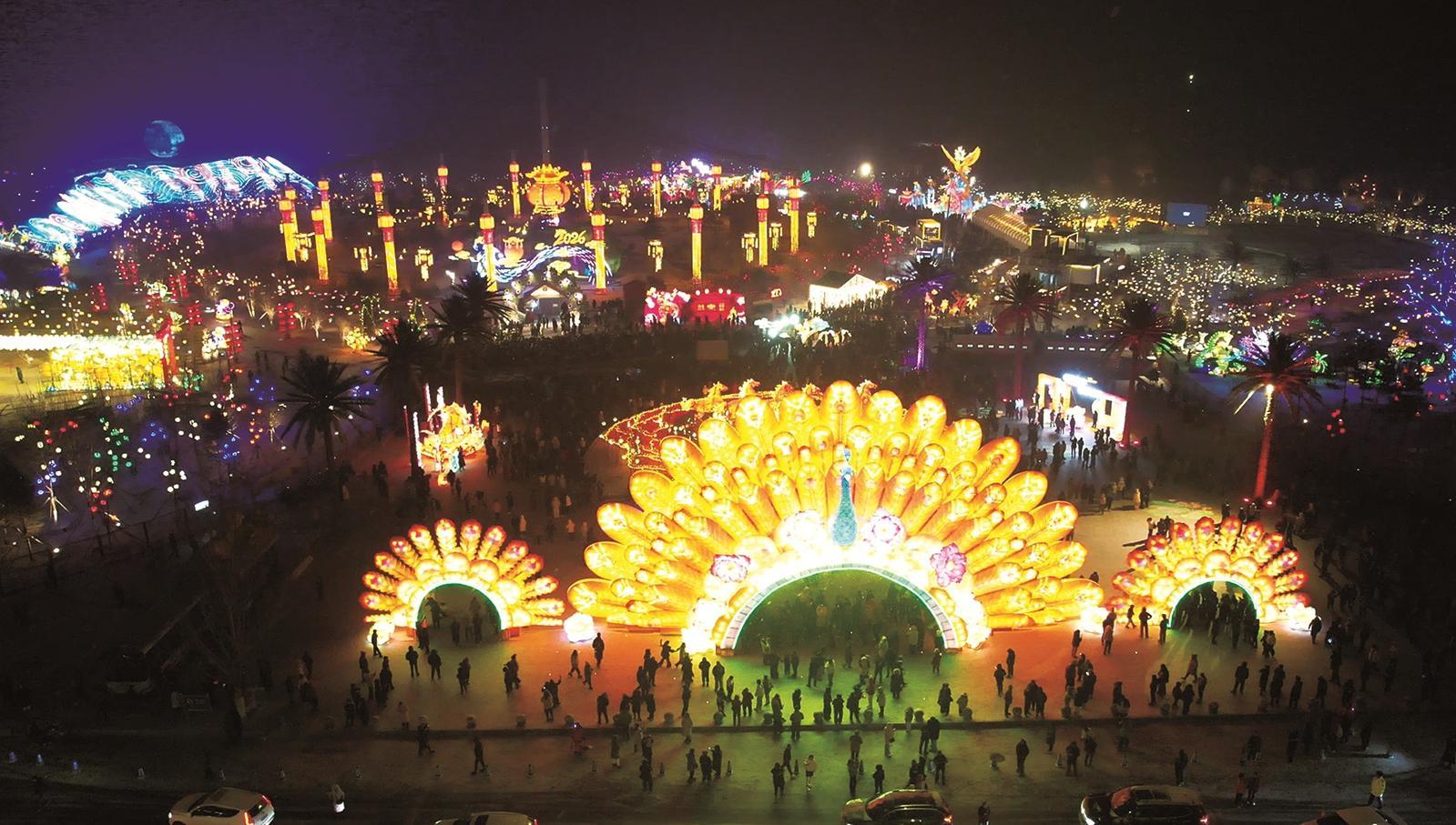 作为春节文旅的“顶流打卡地”,辽源市动植物园第二届“国潮万物生·灯映辽源情”迎春灯会精彩纷呈,34组大中型灯组、9000个氛围灯饰、1.06万株地插灯、200个流星雨灯饰装点园区,50米巨型孔雀门、马年专属“马踏青云”、梅花鹿女神、凤栖辽源等灯组惊艳出圈,将国潮美学与本土风情完美融合。白天,市民游客游园赏景、投喂萌宠、参与古树祈福活动;夜晚,灯火璀璨、光影流转,游园巡游、文艺演出轮番上演,日均客流爆满,老少同游、拍照打卡的场景随处可见,成为全家出游的首选之地。