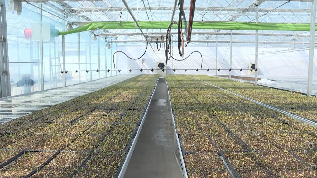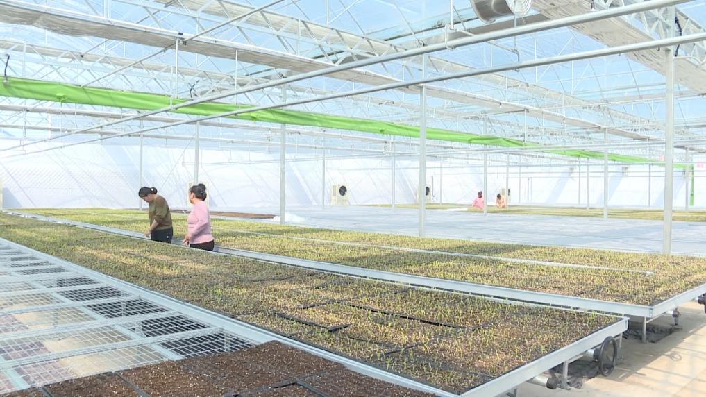在安徽省安庆市宿松思信农业科技有限公司育苗基地智能温室大棚里,工人们正在有序添加基质、摆放穴盘,经过精准点种的秧盘被送入恒温恒湿的育秧大棚。