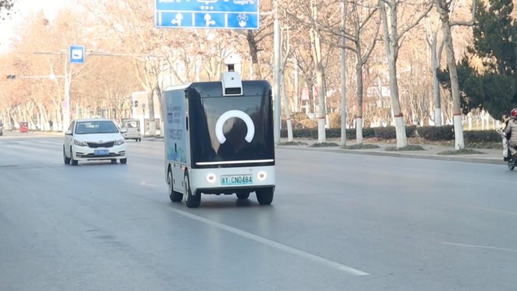 在淄博市高青县街头,一家药品销售企业的无人配送车每天沿预设路线完成18家药店的药品补给。